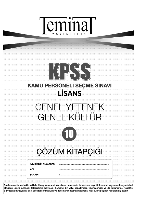 GKGY 10’lu Deneme Lisans Çözüm Kitapçığı